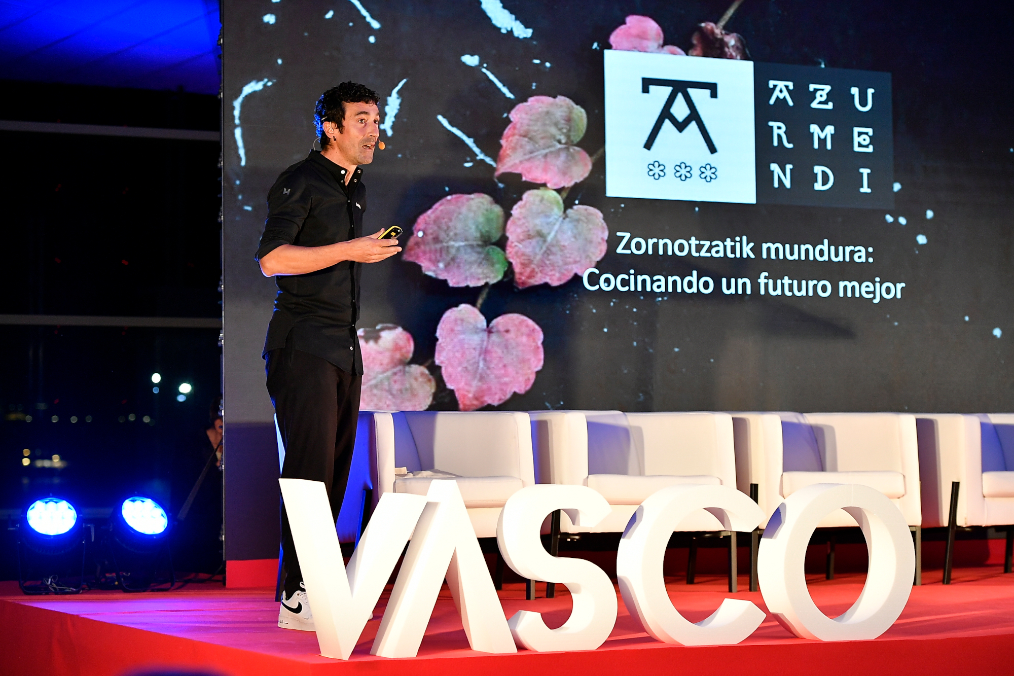 Al finalizar el encuentro el cocinero Eneko Atxa., con el que la familia Azarloza comparte la pasión por la innovación y una visión internacional desde un mismo origen, Zornotza, ofreció a los invitados una propuesta gastronómica con una cocina in situ con una motivadora charla.
